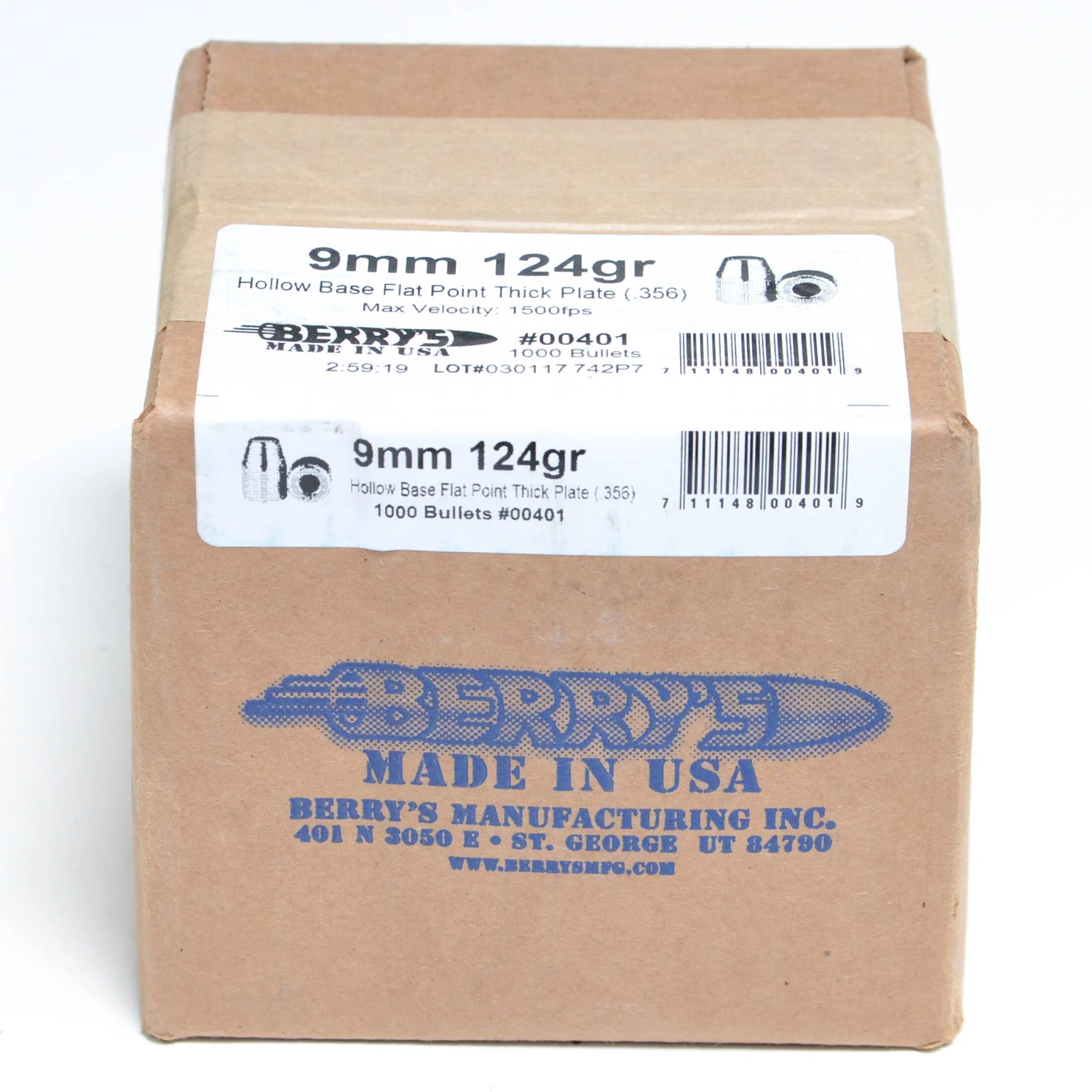 Berrys .356 / 9mm 124 Grain Hollow Base Flat Point Thick Plate (1000 Ct.)