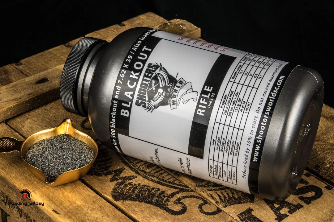 Shooters World Blackout is also known as Lovex D063.02. Originally it was specifically designed for performance in the 300 Blackout. Ballistic results for this propellant show it appropriate for both pistol and rifle cartridges that incorporate a near straight-walled cartridge case. The propellant gas generation rate is appropriate for .300 Blackout, 7.62Ã39, .30-30, .22 Hornet, as well as many straight-walled large pistol and rifle cartridges where rapid transformation from powder to gas is desired. It is similar in burn speed to Accurate 1680®.