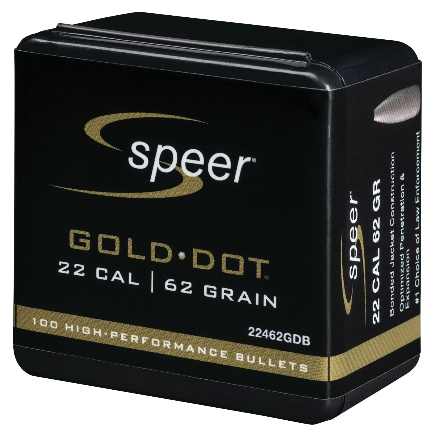 Law enforcement professionals trust the Gold Dot® bullet design with their lives every day. Now Speer® offers consumers the same performance in a line of personal protection rifle bullets. Their exclusive manufacturing process bonds the uniform jacket to the core one atom at a time, ensuring proper expansion and nearly 100 percent weight retention. The result is superb accuracy and immediate, threat-stopping performance.
